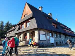 Tak wiem jaki wniosek był po ostatnim projekcie „Kolarstwo Górskie” – ja się do tego nie nadaję ale tym razem podjazd na Turbacz okazał się całkiem inny niż w przypadku Fereczatej w Bieszczadach. Czy był łatwy – nie, ale można było wjechać. Turbacz schronisko i dużo ludzi na rowerach MTB, w tym elektrykach i tylko ja i Łukasz na Fatbike – czym nie powiem budziliśmy zainteresowanie zarówno rowerzystów jak i turystów pieszych. Od kilku lat Fatbike jest dostępny na rynku w Polsce a nadal wiedza o nim jest znikoma …